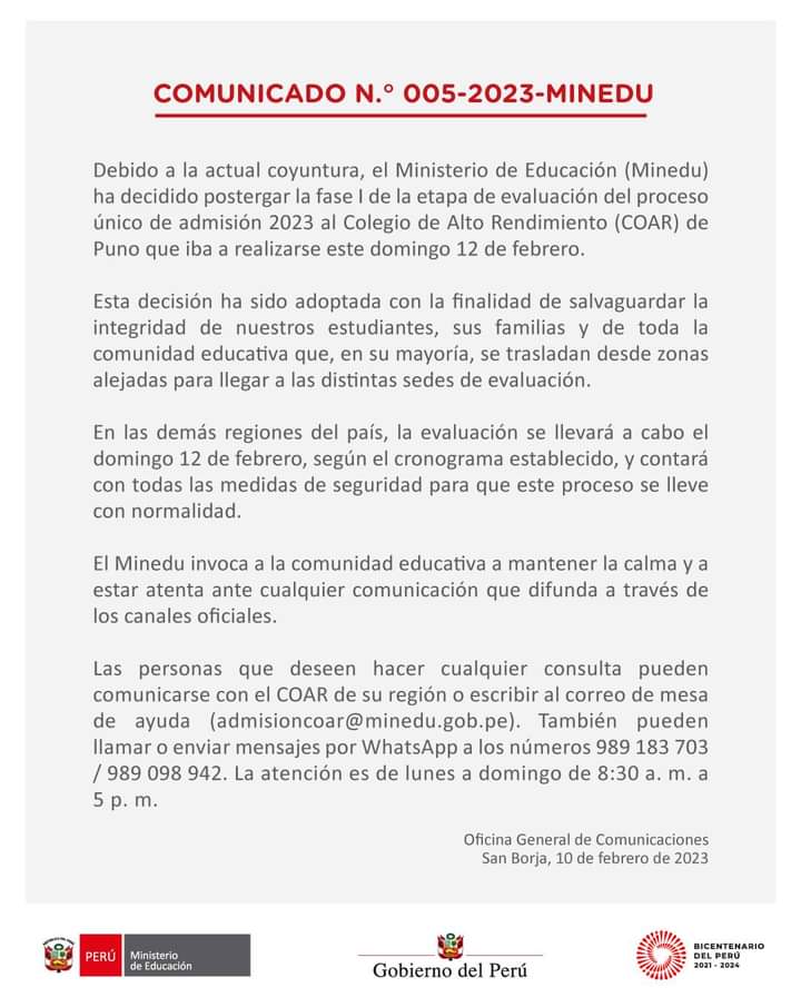 COMUNICADO REFERENTE AL ROL DE VACACIONES DEL PERSONAL ADMINISTRATIVO D.L.N°276