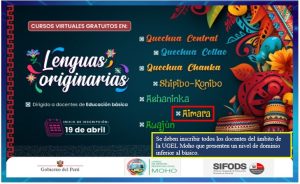 Esta iniciativa promueve la matrícula y culminación de los cursos de lectura y escritura en lenguas originarias, desarrollados a través de la plataforma SIFODS . Su objetivo es elevar el desempeño profesional docente y garantizar una implementación efectiva y pertinente del Modelo de Servicio de Educación Intercultural Bilingüe (MSEIB) en el aula